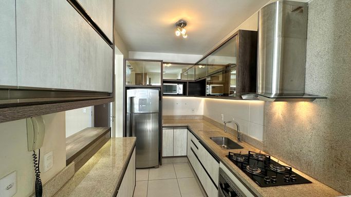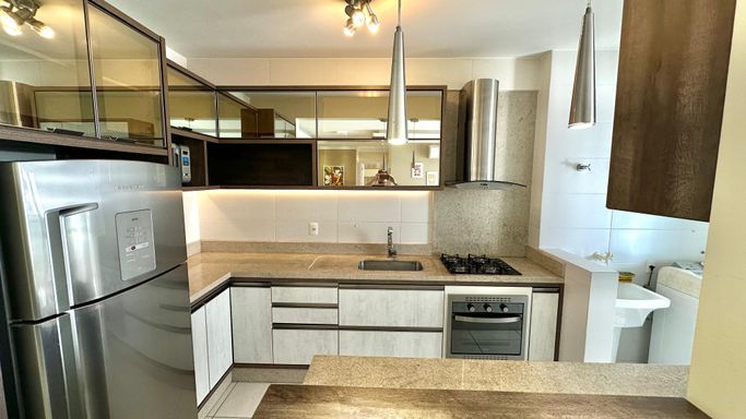 -- 02 dormitórios, sendo 01 suíte com closet e mobiliada