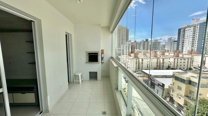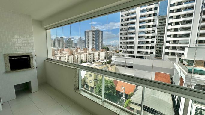 -- Sacada gourmet com churrasqueira a carvão e fechada com vidro