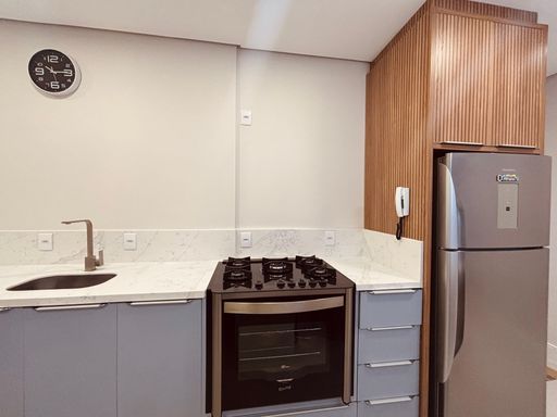 - Sala e cozinha integradas com móveis planejados