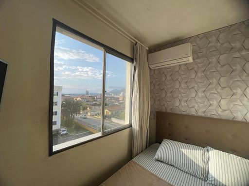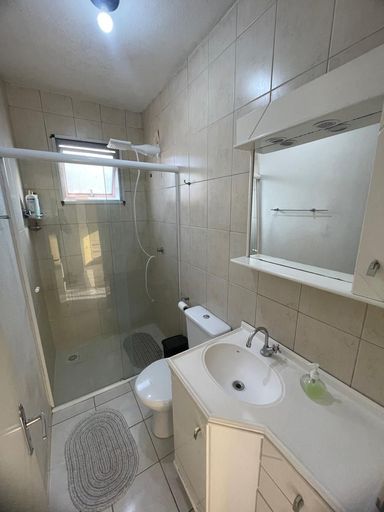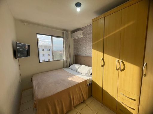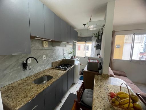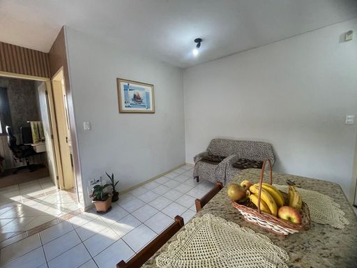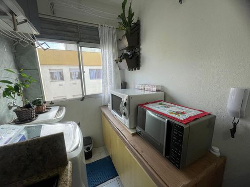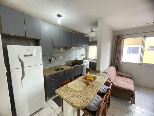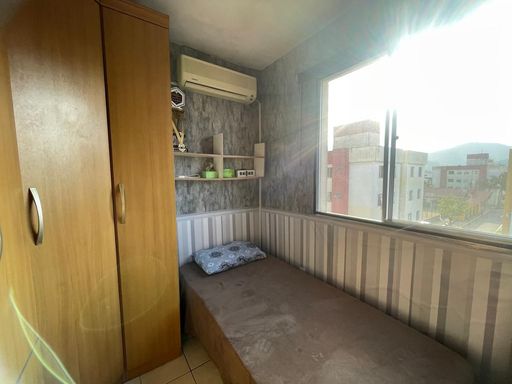Apartamento, quarto pavimento, com 2 dormitórios, sala e cozinha integradas, banheiro social, área de serviço, 1 vaga descoberta. Ficam os móveis da cozinha, banheiro e armarios nos quartos.
