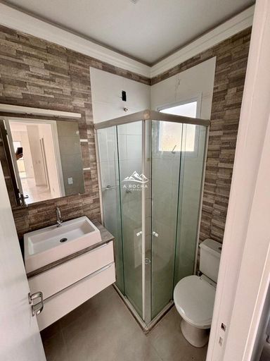 • Banheiro social completo, com box, pia e espelho