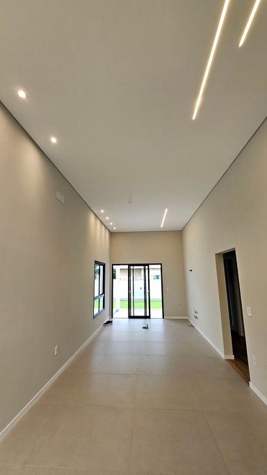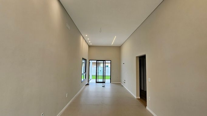 - Sala e cozinha integradas, pé direito duplo, gesso e iluminação já prontos