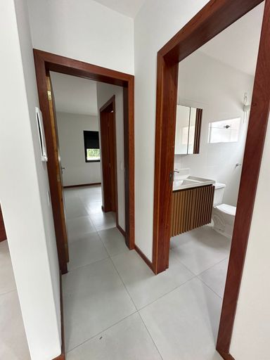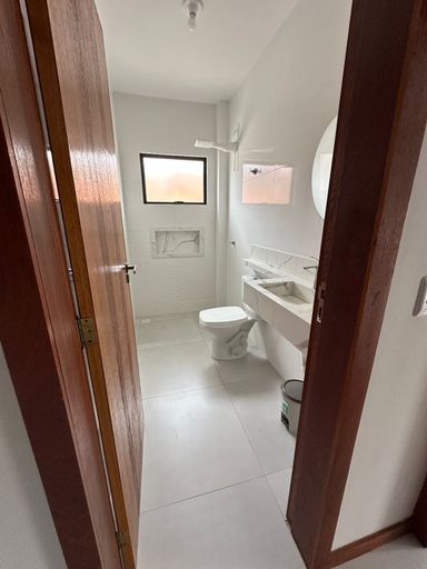 Casa térrea, construída em 12/2022, com 3 dormitórios, sendo 1 suíte, sala cozinha e área de serviço conjugadas, bwc social, fechadura eletrônica Intelbras, ar condicionado split na suíte, torneiras das pias dos banheiros com aquecedores elétrico Lorenzetti, aberturas das janelas em alumínio, com persianas nos quartos com abertura manual, espaço de estacionamento para dois veículos e terreno todo com brita, terreno todo murado e com pingadeiras e portões em vidro.