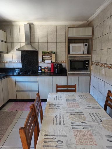 O imóvel comporta até 5 veiculos, sendo dois em garagens cobertas (uma na casa e outra na área Gourmet).
