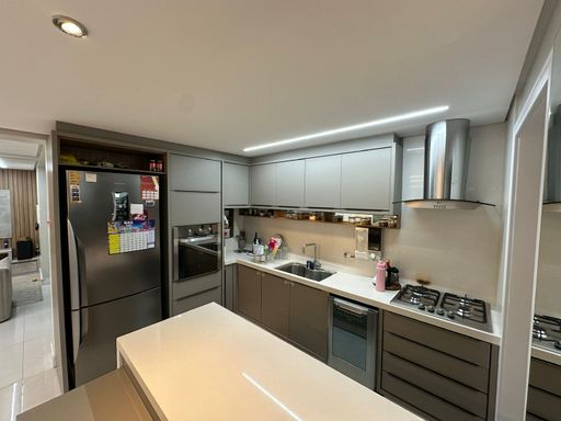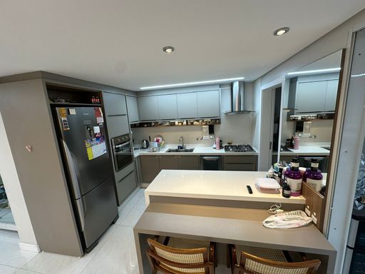 * Sala e cozinha integradas em conceito aberto